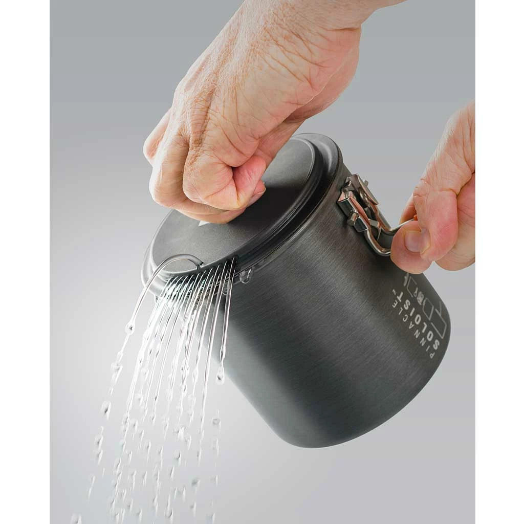 - Pot handle locks in place for cooking, secures set for transport eliminating need for a stuff sack