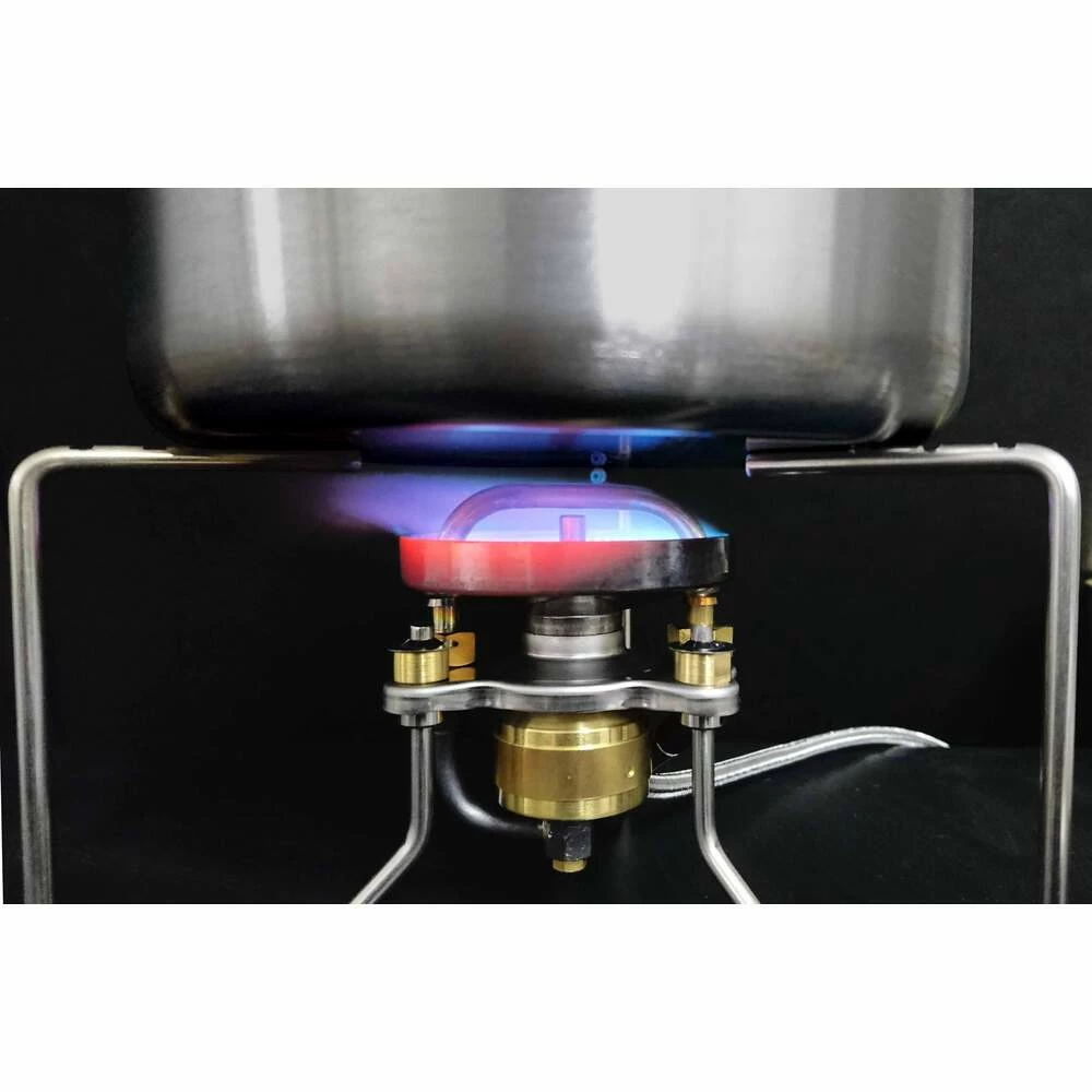 - Fold out, three-prong pot support for a stable cooking base